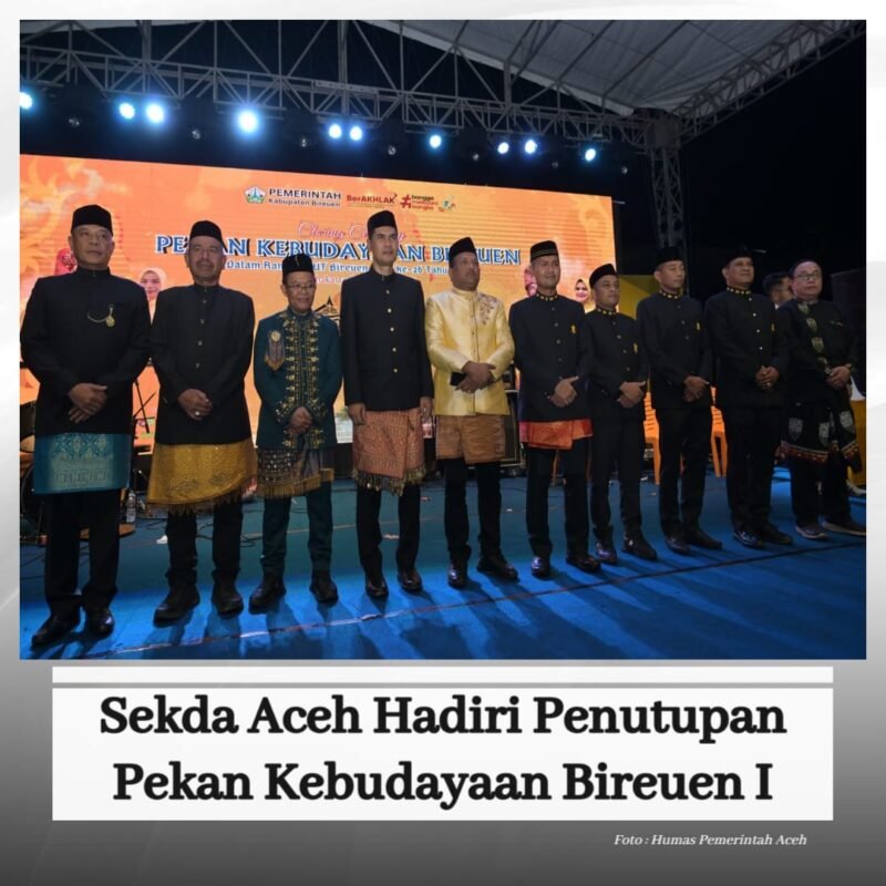 BIM | Bireuen – Sekretaris Daerah (Sekda) Aceh, M. Nasir, S.IP, MPA, menghadiri acara penutupan Pekan Kebudayaan Bireuen dalam rangka memperingati Hari Ulang Tahun (HUT) ke-26 Kabupaten Bireuen yang diselenggarakan di Ruang Terbuka Hijau (RTH) Cot Gapu Bireuen, Sabtu malam (11/10/2025).