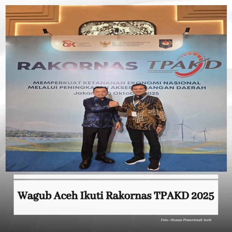 BIM | JAKARTA — Wakil Gubernur Aceh, Fadhlullah, SE., mengikuti Rapat Koordinasi Nasional Tim Percepatan Akses Keuangan Daerah (Rakornas TPAKD) Tahun 2025, yang berlangsung di Ballroom Danarote, Balai Kartini, Jakarta, pada Jumat, 10 Oktober 2025.